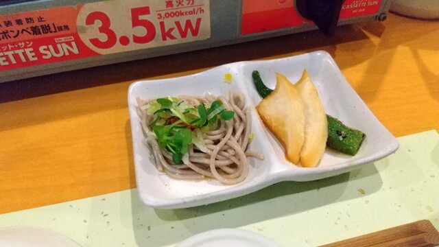 まずお通しで「蕎麦」が出てきてテンションが上がり、「手羽先明太」の美味さに感動しつつ、
