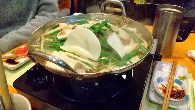 4名で来ていて、鍋が2つあるということだったので、”白もつ(塩)”と”金もつ(醤油)”をお願いしました。