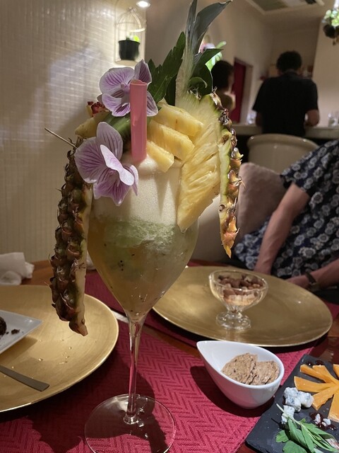 扉を開けたら別世界でした。沖縄最後の夜にバーに行ってみたく。思っていたのとは全く違いましたが、良いところでした。奇抜っていうより、芸術品に近い。そして、味は本格的。思い出に残るバーでした。フルーツのカ...