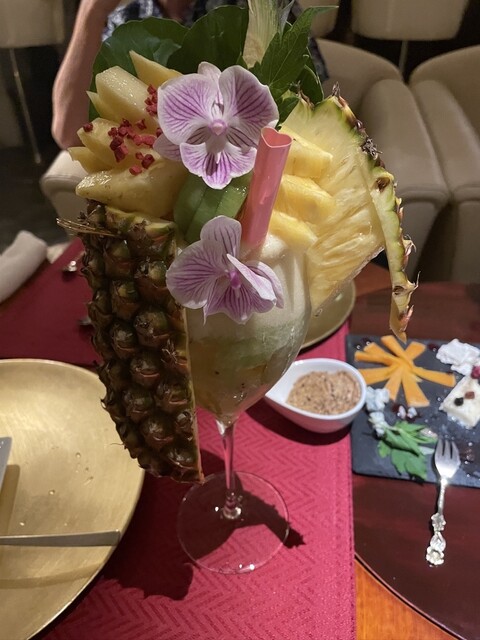 バーだとジンリッキーとハイボールと軽めにフルーツを使ったカクテルを頼むことにしている私、こちらでは堪らず泡盛のカクテルと山盛りフルーツのカクテルにしました!