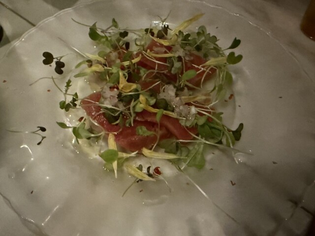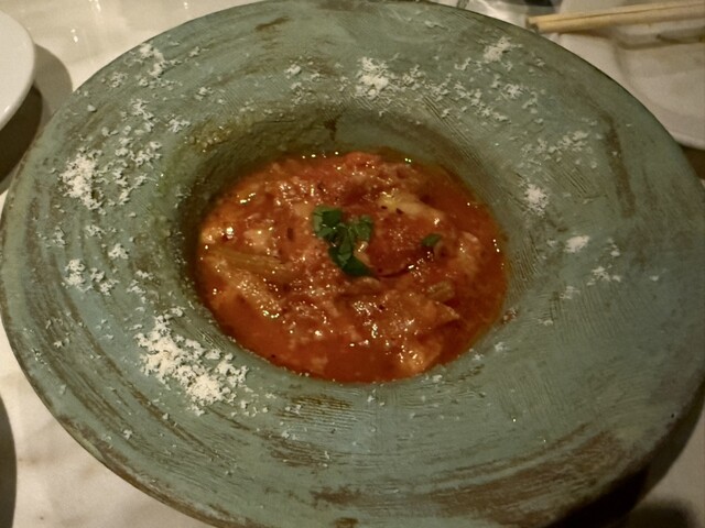 ホテルの近くにあり気になっていたお店です。当日に予約が開放されたのかTableCheckで予約ができウキウキで行って来ました。 コの字型のカウンターになっており、お店の方が全方位でワインを勧めてくれるワイン好きならテンションあがるライブ感溢れるスタイルです。 まずはシャンパーニュで乾杯します... 詳細を見る