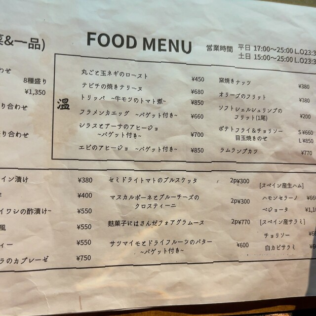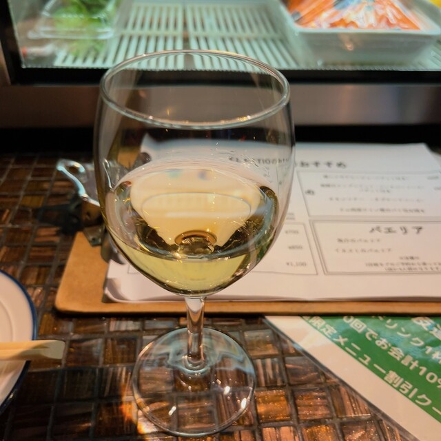 オーダーは、白ワインのグラスと、タパスの盛り合わせで様子見です。