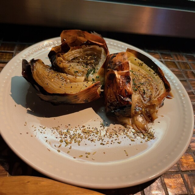 玉ねぎロースト、皮までが綺麗に焼かれて、中身はしっかりトロトロ、旨いに決まってるし、胡椒が効いてるのはイイ感じのアクセント。