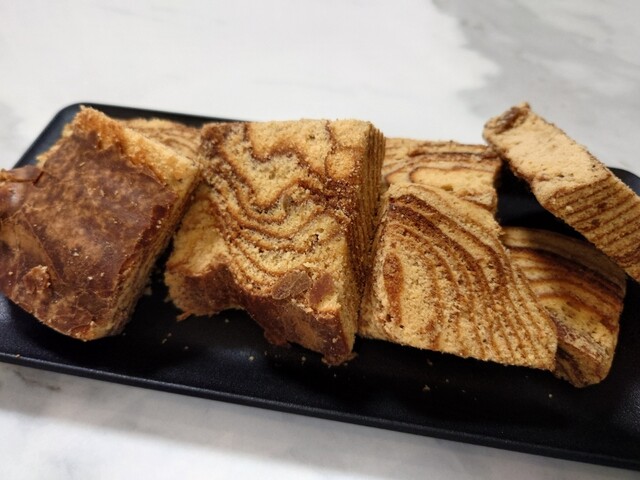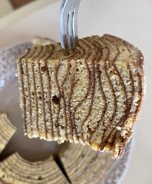 チョコとプレーンを購入しましたが、チョコはとても濃厚でバームクーヘンというよりチョコテリーヌとかブラウニーに近いレベルでした。プレーンの方は少しパサっとしていたのが残念でした。