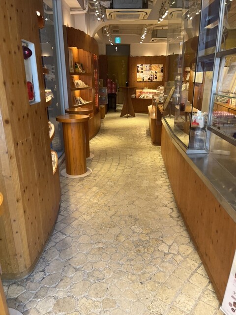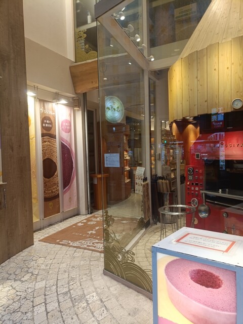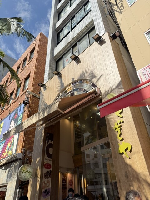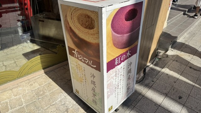 国際通りの真ん中へんにあります。細長いお店ですが、前にバームクーヘン焼き機があるの...