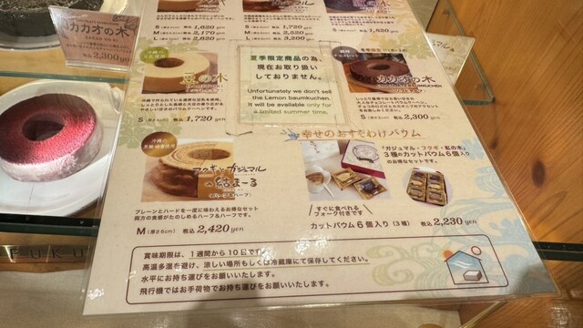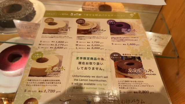 訪問時、豆乳で作られた豆の木は売り切れ、それ以外のバームクーヘンは残っていました。