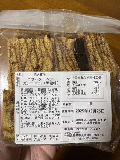 沖縄に旅行に行く友人にお願いしてここのバームクーヘンをお土産で買ってきてもらいました。