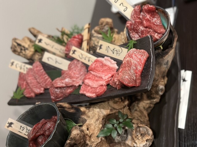 ボリューム感はあるとお褒めの言葉を頂く事が多いです。我々の名誉をかけてもよい、自信あふれる和牛盛り合わせ。直送の石垣牛ホルモンの盛り合わせ。県産を中心に国内野菜の自家製キムチ、ナムル、サラダ。〆は人気の盛岡冷麺と日替わりデザート。 【事前予約特典】「和牛10秒焼きすきと卵黄と一口ご飯」 事前にご予約をして頂いたお客様にお一人様に対し、一人前を無料でお付けいたします。一人前1800円相当の品なので、おまかせコースは事前予約が断然、お得です!