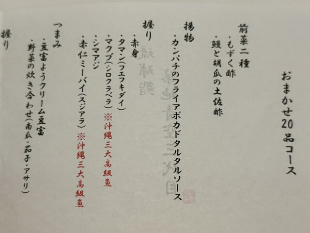 沖縄の地の魚介類で江戸前鮨として究極を追求!沖縄で本格鮨を食べられる優良コスパの人気店。
