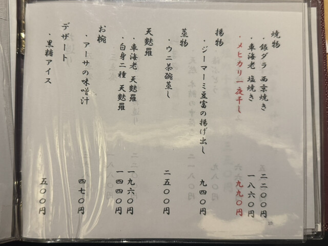 旬のつまみ8品、にぎり寿司10貫、お椀、デザート