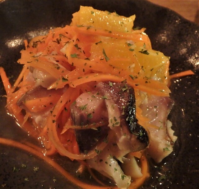 〆サバと無農薬人参とオレンジのおつまみ¥600