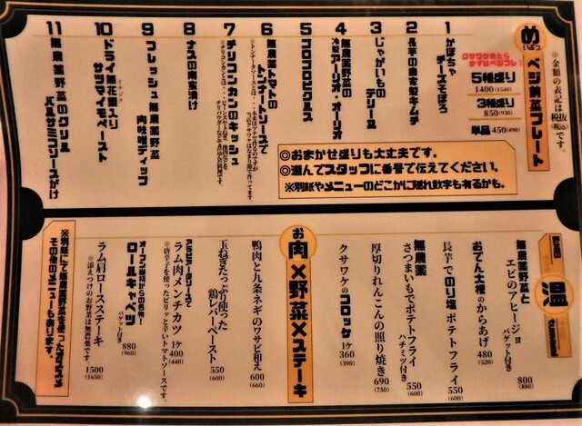 | 料理 | 野菜料理にこだわる |