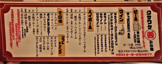 | コース | 飲み放題、3時間以上飲み放題 |