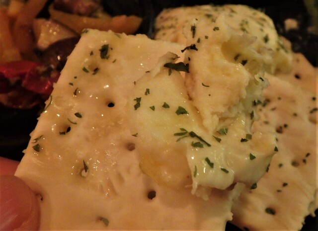 添えてあるカリカリのクラッカーに乗っけて。