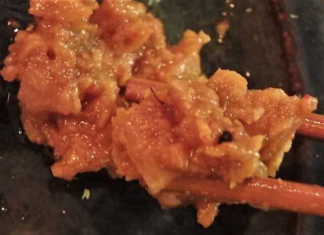 肉味噌には粗挽きの挽肉がゴロゴロ。