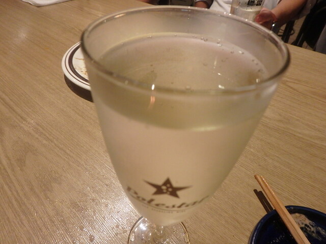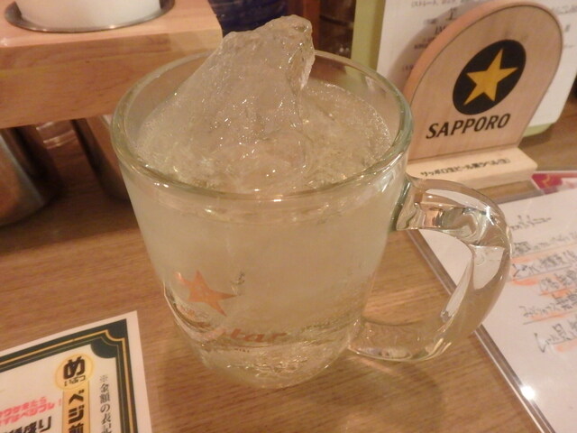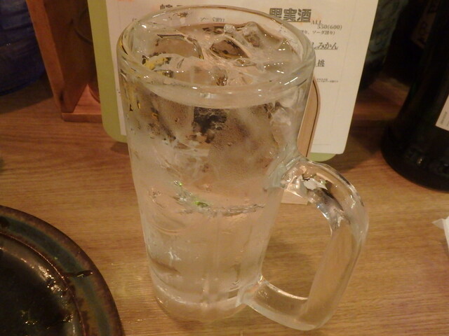 泡盛の水割りをジョッキでどうぞ。