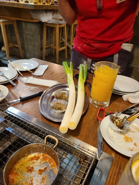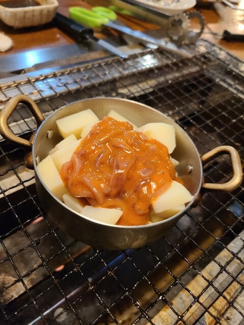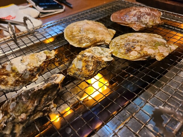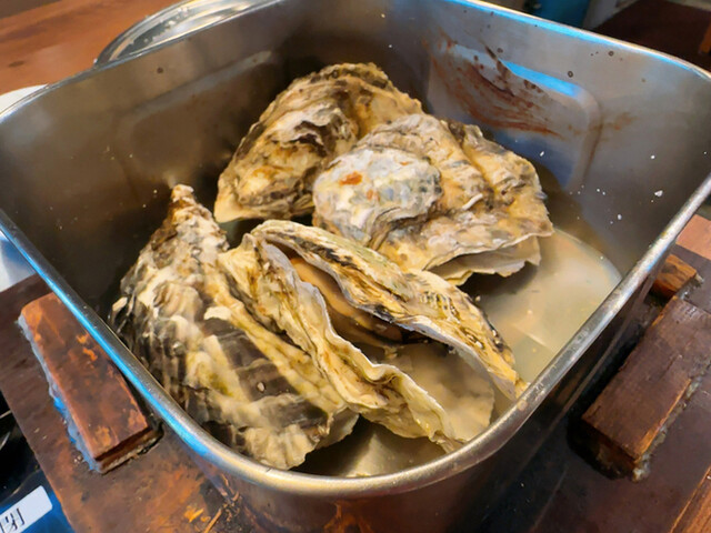 テーブルに焼くコンロが付いており、牡蠣はそこで自分で焼くタイプです。蒸し牡蠣がお通しとして出てき...