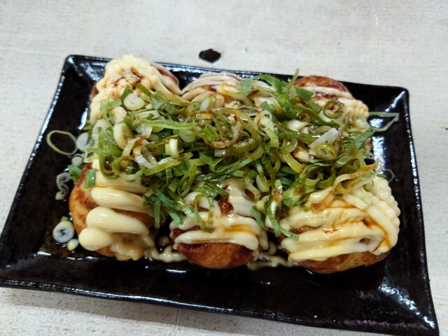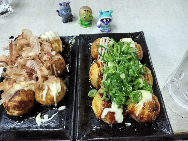 たこ焼き、ねぎガーリックソースとねぎ塩。