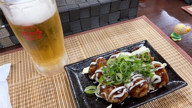 今日も嬉しいたこ焼きとビール♪