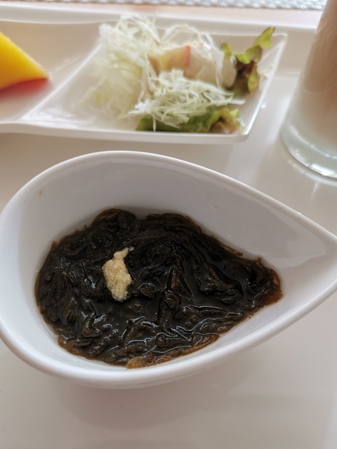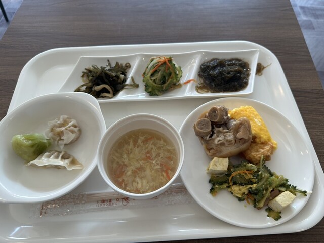こちらで宿泊 朝ごはんはこちらで、 フロント階のレストラン 朝食1600円 沖縄の家庭の味がコンセプト。 食べたのは、昆布の炒め物 ゴーヤの酢の物、... 詳細を見る