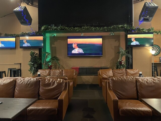 沖縄最大級のダイニングバー【Line】★結婚式の二次会や、各種パーティー、スポーツ観戦など、盛り上がりたい時は当店で決まりです♪最大150名様まで収容可能!大型モニター他、ダーツなど設備も充実で盛り上がる事間違いナシ◎圧倒的な開放感とゆったり座れるソファー席、お料理もパスタやピザなどお酒に合うメニューをご用意してますよ☆パーティー特典も多数ご用意!まずはお気軽にお問い合わせください♪