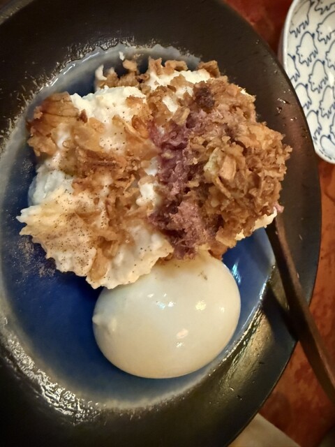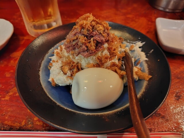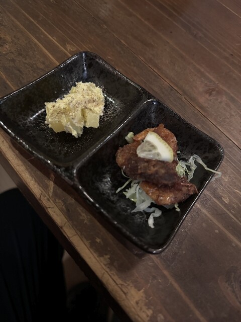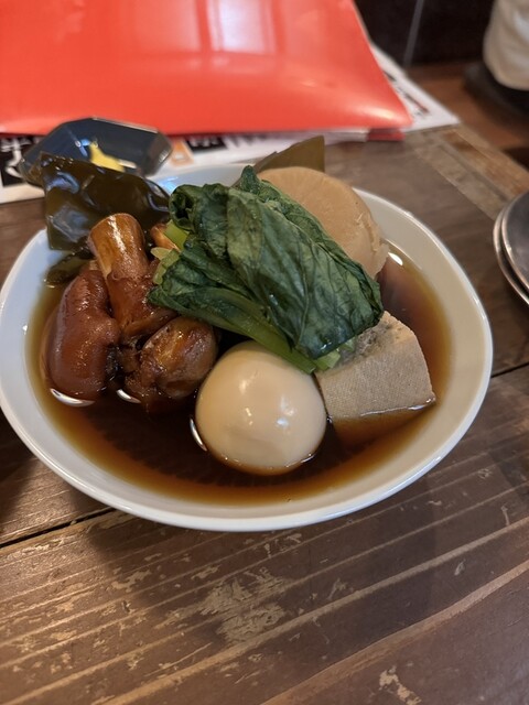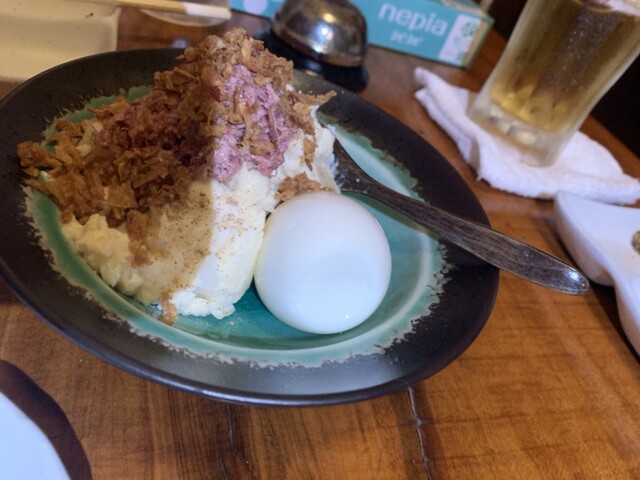 頼んだら料理もとても美味しい。ポテトサラダは卵1個をセルフで混ぜていい感じにするスタイルだし、おでん...