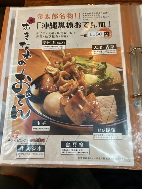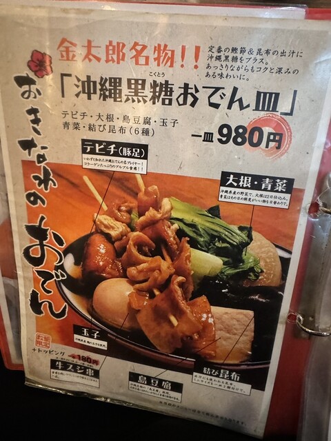 沖縄大衆酒場おでんの金太郎として沖縄おでんを中心に沖縄料理多数有り |