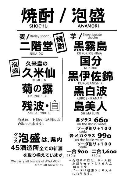 また、お料理と相性抜群のひとひねり酎ハイ。県内45全酒造所の泡盛も取り揃えて皆様をお待ちしております!