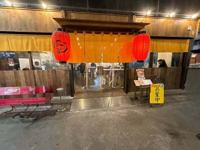 提灯と明るい暖簾が目印の店構えで、店内はカウンター席とテーブル席があり、賑わっています。