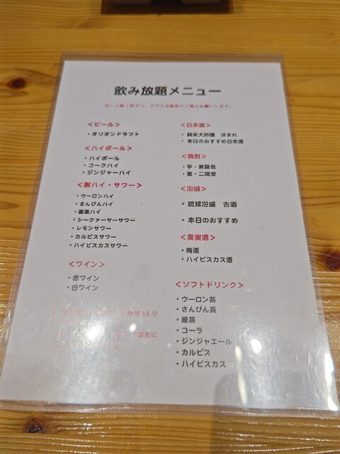 飲み放題は2時間半。ラストが30分前なのでたっぷりと飲めます。