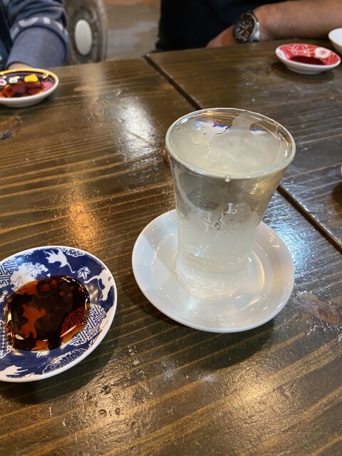 まずはトマトサワーと鮮魚ブツ切り刺し