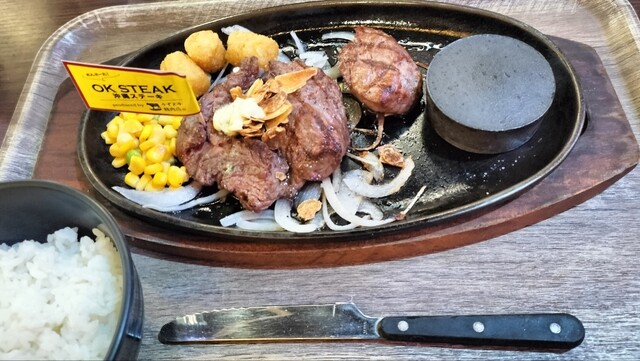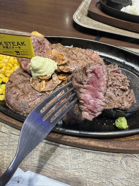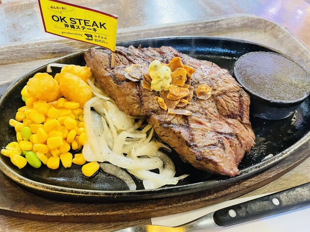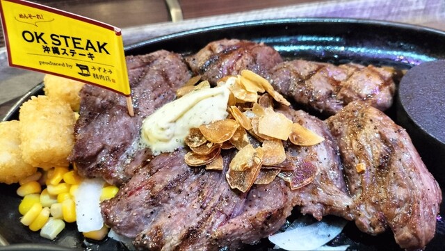沖縄への旅行。 欠かせない料理といえば? 間違いなくステーキでしょう。 多岐にわたる選択肢の中、こちらへ。 みずとみ精肉店。 国際通りのれん街 那覇市場1F。 さまざまな飲食店が勢揃いしているスポットです。 ロースステーキ 200g (1,380円) ライス 並盛 (220円) ... 詳細を見る