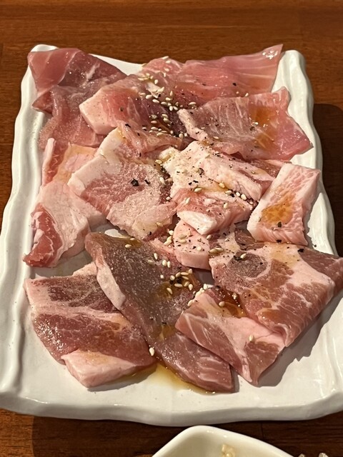 二軒目はどこに寄ろうかと、前のお店を出たところ、 すぐ前に焼肉・ホルモン屋さん発見! ここもまた半屋台風で、めちゃくちゃ雰囲気がいい。 カウンターに空席あり、こりゃ立ち寄るしかありません。 カウンターとテーブル席があり、1~2人でも団体でも利用可。 カウンター席に座らせて頂き、一人焼肉のスタートです。 この、小ぶりなロースターがいいですよね~。 飲み物は「ハイボール」。 お... 詳細を見る