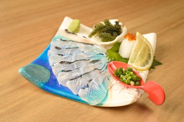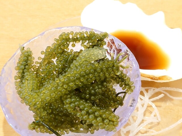 国頭漁協直送やんばるイマイユ薄造り 海ぶどう添え (by お店)