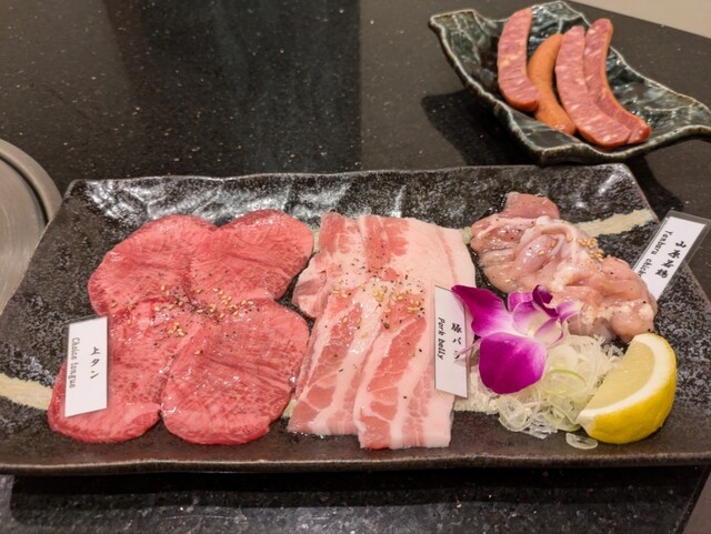 ロースが程良いサシが入っていて美味しかったです。上、特上でなくても十分でした。17-18時の間はハッピーアワーでもとぶ牛が29%引きとお得です店員さんも真面目で愛想良くいい雰囲気で楽しい食事でした♪✨