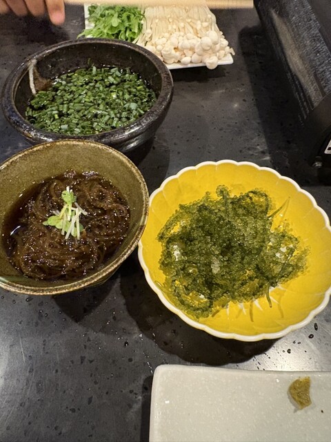 まず海ブドウともずくから始まり、たくさんのお肉を食べていきます。