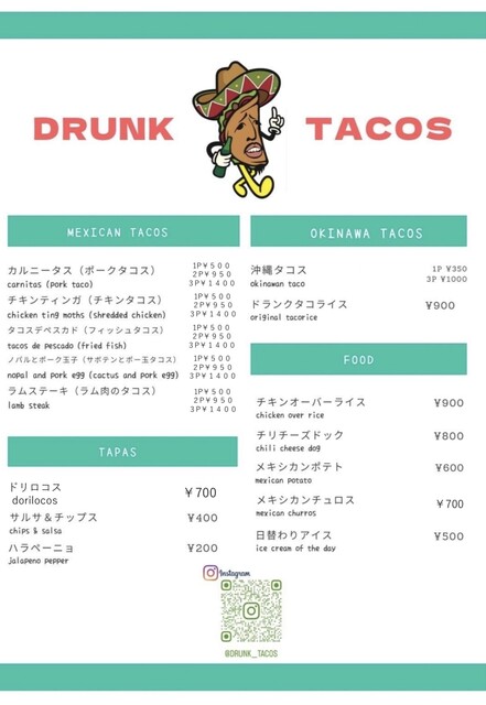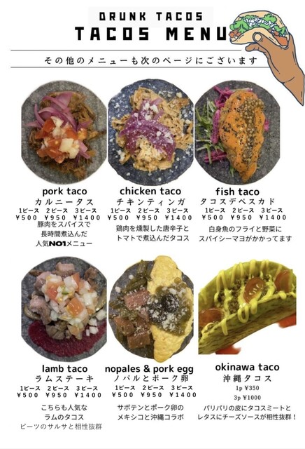 沖縄料理の沖縄タコス、ドランクタコライスとメキシカン料理をメインの国際通りより徒歩3分のタコス屋。