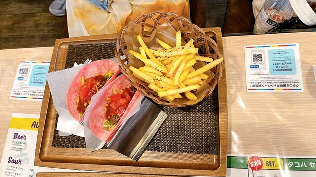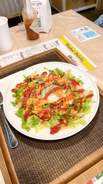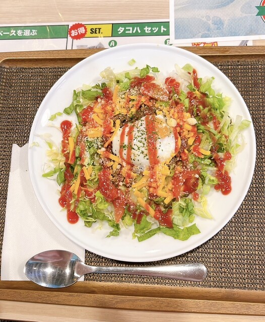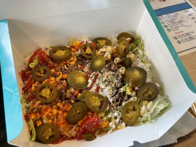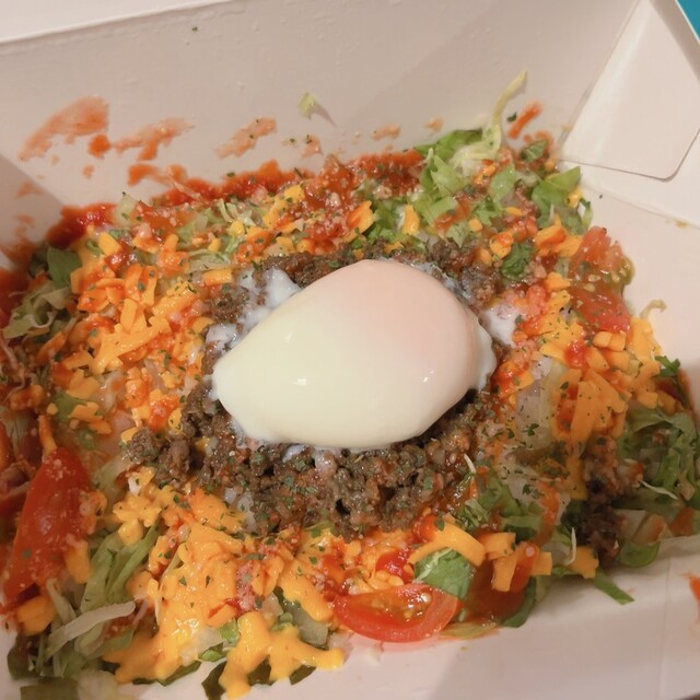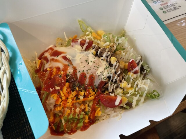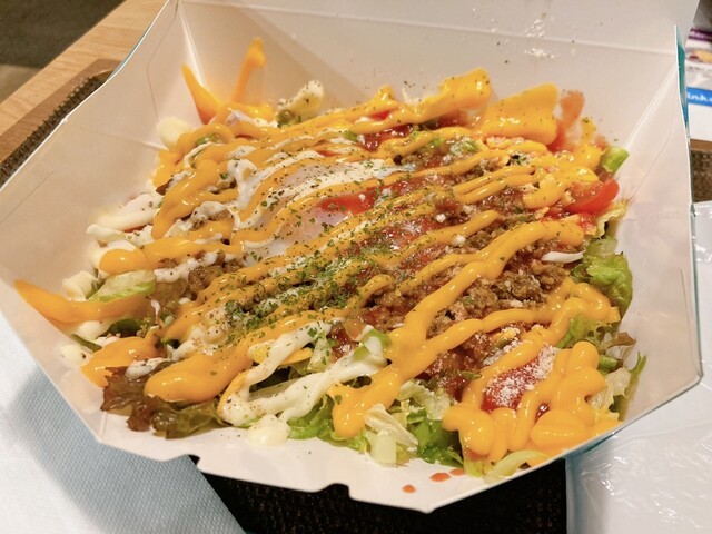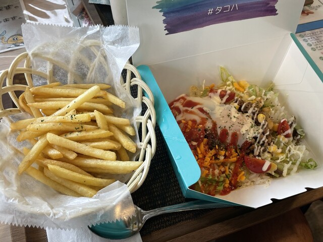 国際通りから少し路地裏に入ったところにあるこちらのお店。 平日17:00頃に訪問。 家族3人でオーダーしたのは… ■ハーフ&ハーフタコライス[M](¥930) お店1番人気。 タコライスとニュータコライスのハーフ&ハーフ。 ■アボカドタコライス[M](¥1,080) ■ポテト[L](¥380) こちらはレジで注文&お会計するシステム。 お水はセルフサービスでした。 ... 詳細を見る