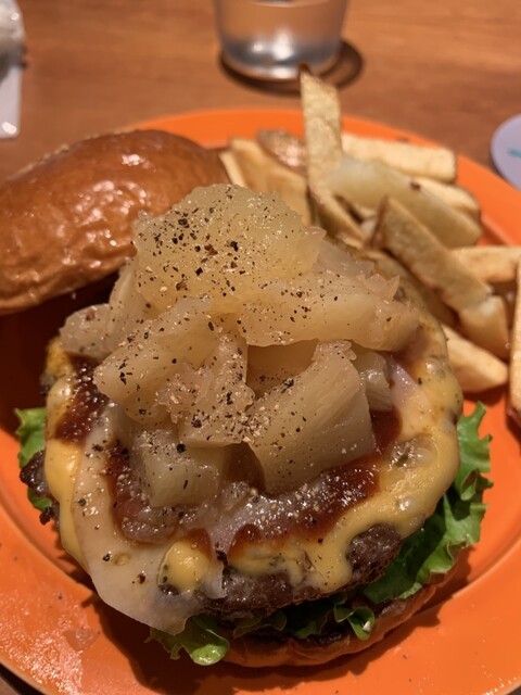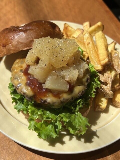 おすすめをお聞きし、定番と教えてもらったパイナップル入りのバーガーを注文