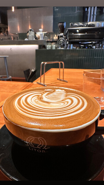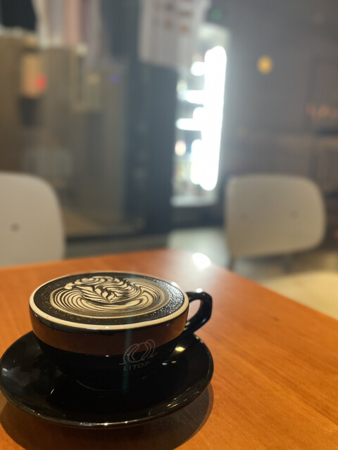 ブラックラテという、竹炭を使ったラテ。見たことなかっ...