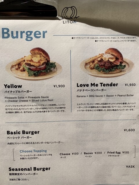 創作意欲あふれるバーガーからLITORを代表する「Yellowパイナップルバーガー」...