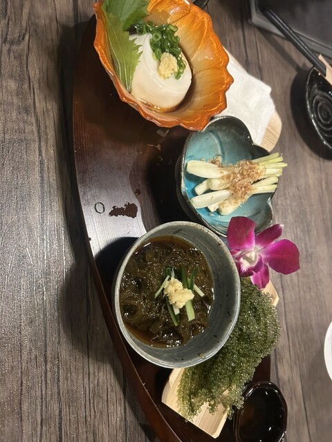 国際通りでしゃぶしゃぶディナー。 おしゃれな店内でキレイです。 あぐー豚しゃぶしゃぶコースを予約して行きました。 ◾前菜3種 海ぶどう、もずく、島ラッキョウと、the沖... 詳細を見る