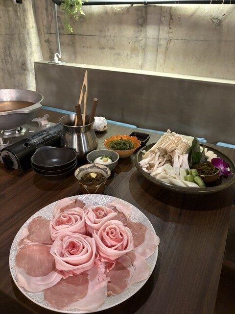 あぐー豚しゃぶしゃぶコースを予約して行きました。