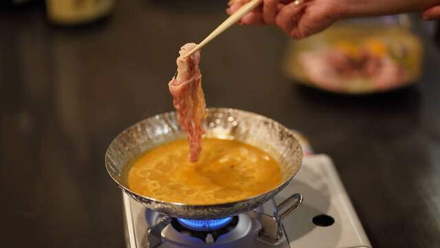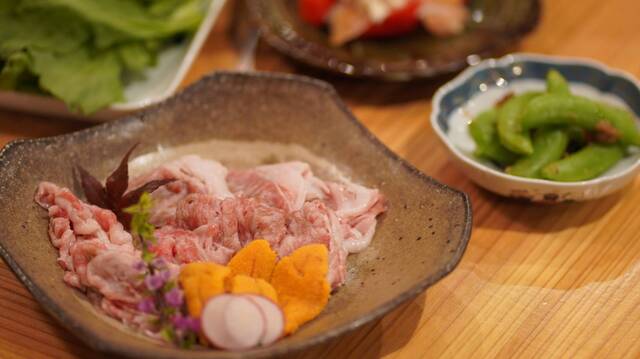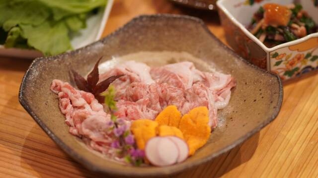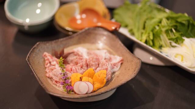 雲丹出汁ねぎしゃぶしゃぶ 黒毛和牛で (by お店)
