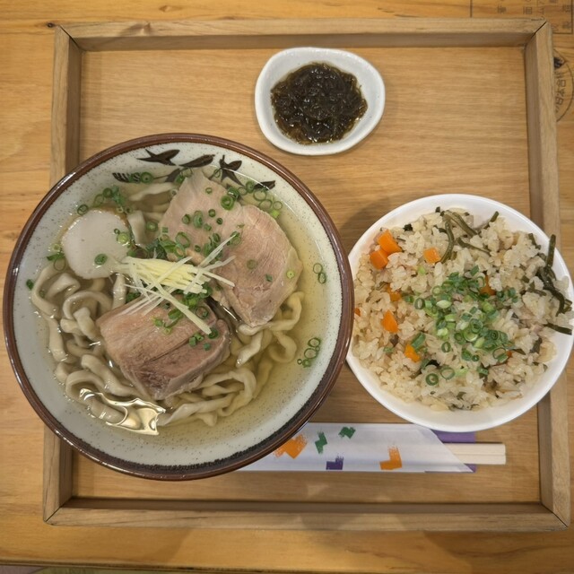 沖縄そばを食べようということで、マイファーストチョイスなお店、首里汀良町にある「てぃしらじそば」にやってきました。 最近、食が細くなってきたのを実感しているので、以前は油みそごはんやじゅーしーもセットでいただいていましたが… 沖縄そば(800円)+いなり(100円) 沖縄そば(もずく酢つき... 詳細を見る