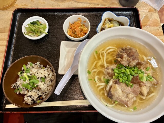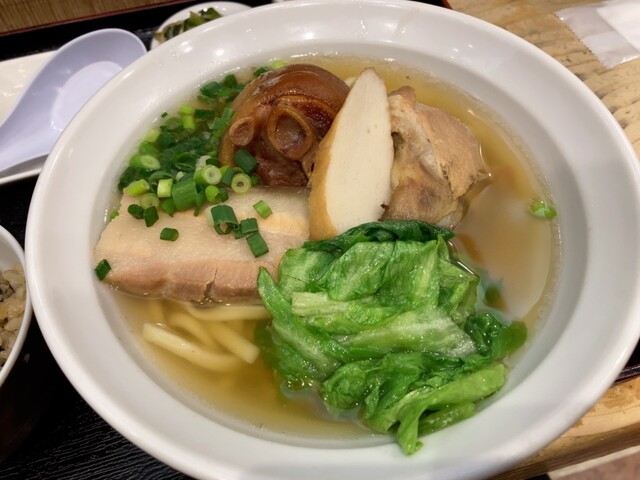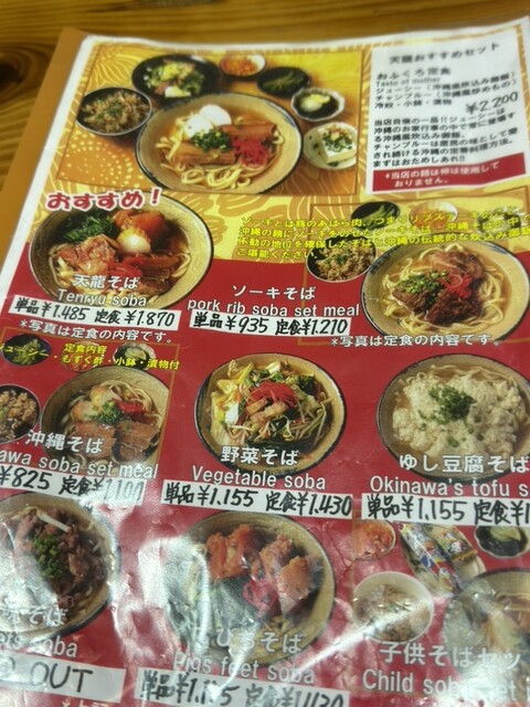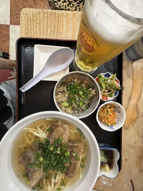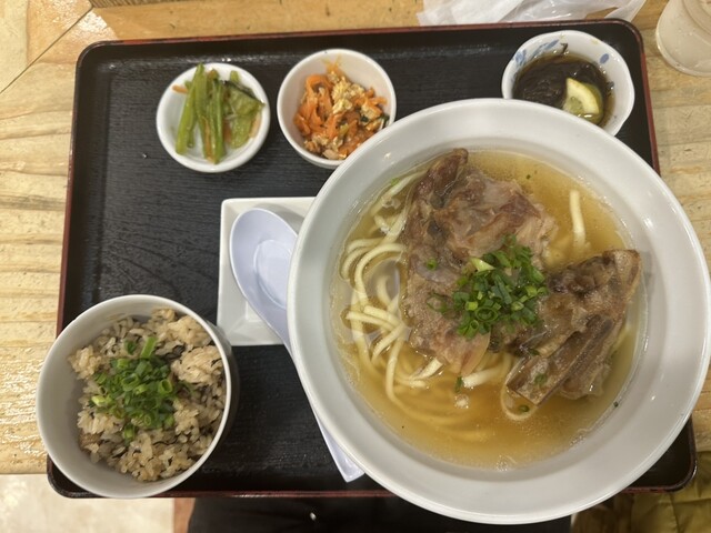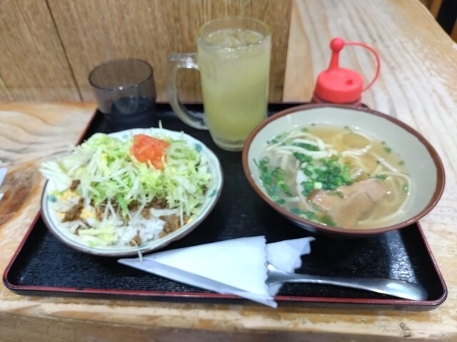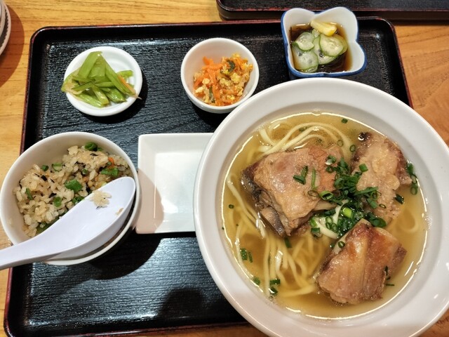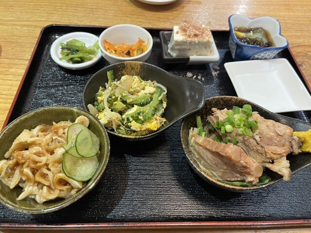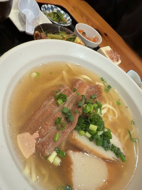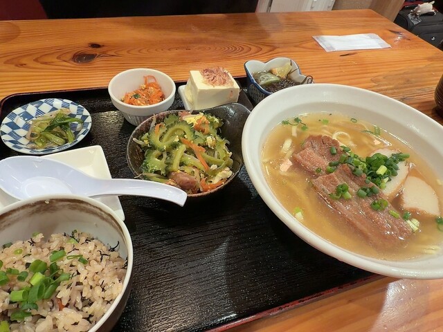 17:40頃に行ってちょうどすぐに入れました。店の名前の天龍セット定食とそうめんチャンプルをいただきました。柔らかいテビチと柔らかいソーキ、ラフていの肉3種と麺は少なめのそばと小皿とジューシーも美味し...