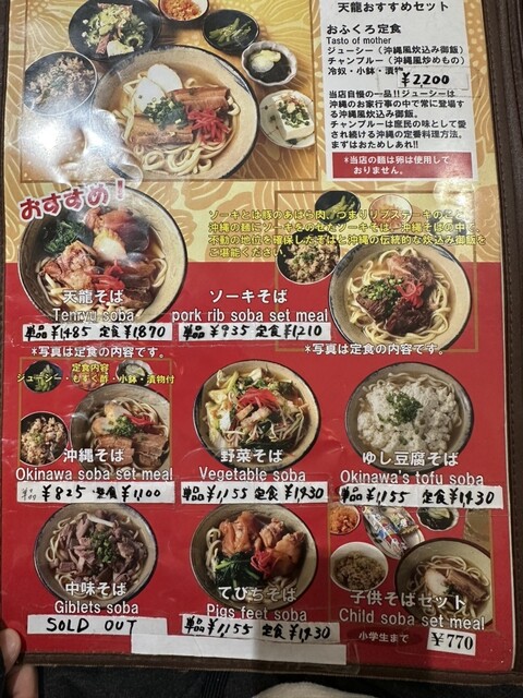 | ジャンル | 沖縄料理、沖縄そば、居酒屋 |