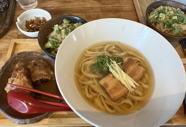 久々の沖縄出張2日目。 前日は雷のためフライトが2時間半遅延し、空港からタクシーで会食に直行して飲むというハードスケジュールに。 疲れた身体を沖縄そばで癒そうと、1人ランチで、麺処 てぃあんだーさんを訪問して来ました。 場所はおもろまち駅から徒歩15分程。天久りうぼう楽市の裏。 てぃ... 詳細を見る