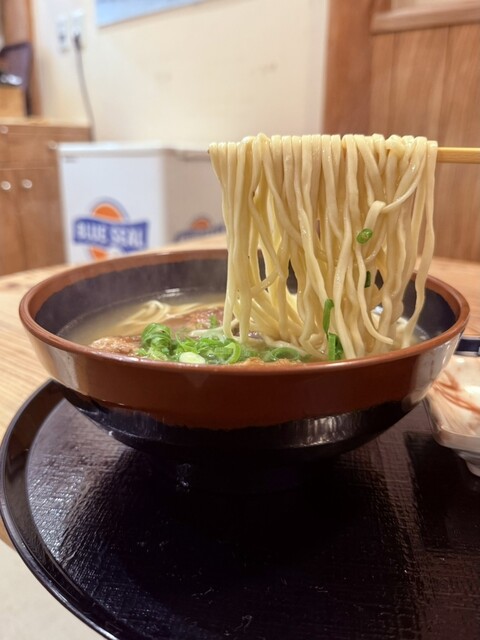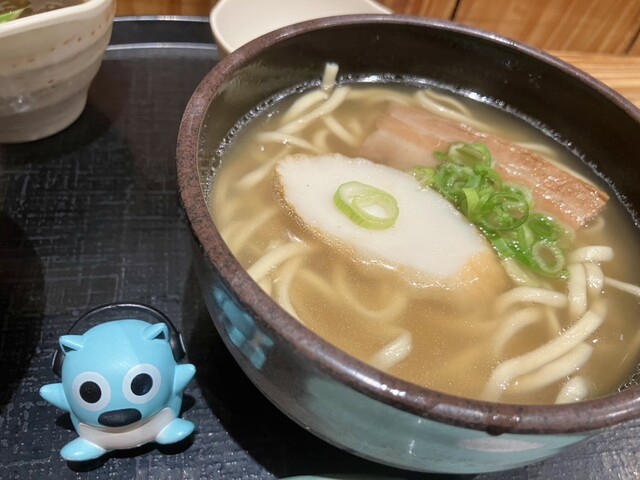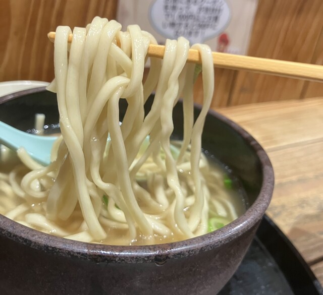 やや濁りを帯びた淡い琥珀色のスープは、豚のコクを軸に鰹と昆布の旨味が重なり、塩味控えめでじ...