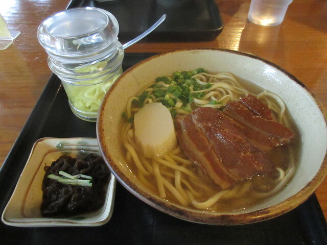 国の登録有形文化財に登録された伝統的な赤瓦屋根の民家で、代々伝わる手作りの沖縄そばが食べられるお店。落ち着いた佇まいで、ここに来るだけでゆったりした気分になれそうだ。忙しい日常の喧噪からちょいと逃げ出して、心と身体にやさしいそばで癒されよう。母屋だけでなく、フール(豚舎を兼ねたトイレ)や目隠しと魔よけの役割を果たすヒンプン、庭の池や石垣も登録有形文化財に登録されているので、それらをじっくり見学でき...るのも、この店ならではの魅力のひとつ。